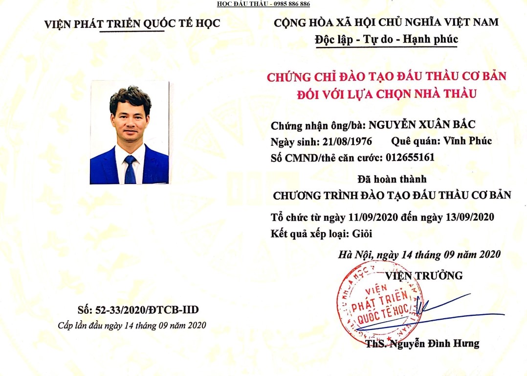 Chứng chỉ đấu thầu nghệ sỹ Xuân Bắc