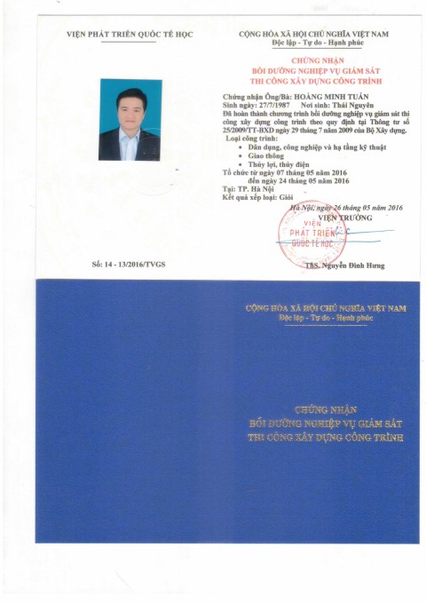 Mẫu chứng nhận khóa bồi dưỡng nghiệp vụ Giám sát thi công xây dựng công trình
